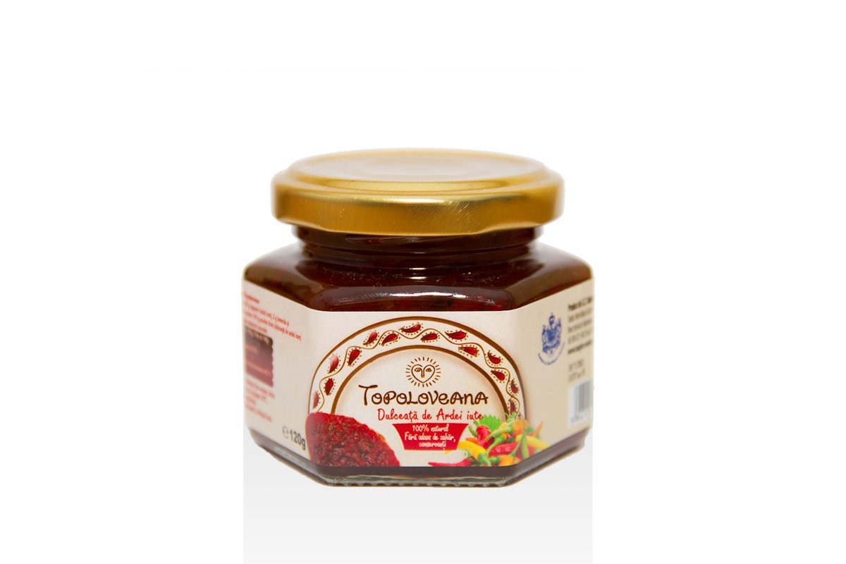 Magiunurile și dulcețurile de la Topoloveni reușesc să ne surprindă mereu. Dulceața de ardei iute, între dulce și plăcut iute, poate fi un sos excelent pentru diverse preparate. Dulce, acrișoară și iute doar puțin peste măsură, această dulceață este minunată cu diverse fripturi sau legume, te vei îndrăgosti de ea și nu îți va mai lipsi de pe masă.