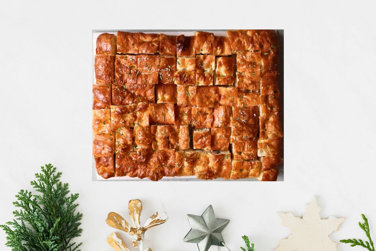 Pâine artizanală moale și aerată, dospită lent, stropită cu ulei de măsline extravirgin, parfumată cu rozmarin proaspăt și finisată cu sare de Guérande. Gust echilibrat, textură delicată, perfectă de savurat simplu sau alături de preparate fine. Ideala pentru mesele de sărbători, evenimentele corporate sau platourile elegante pentru invitații care apreciază alternativele curate și creative.