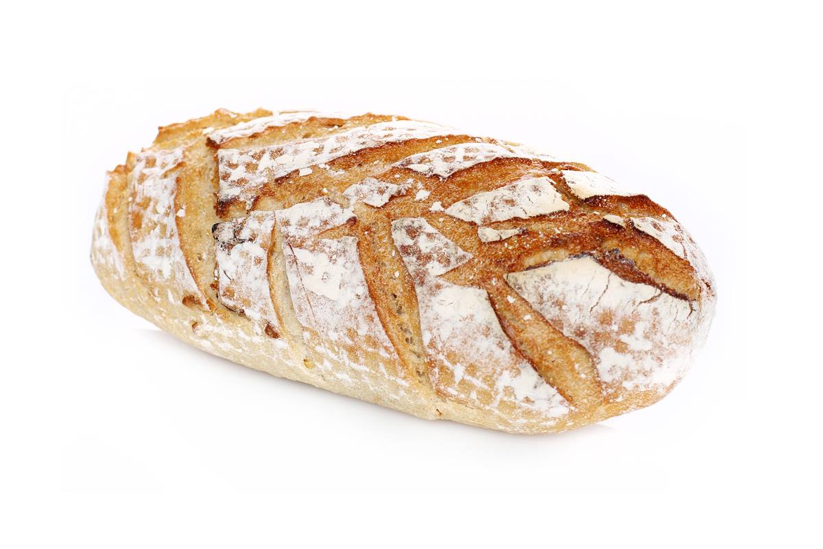 Ingrediente: 100% făină albă de grâu, apă, sare, 5% maia naturala din făină de grâu, 1% usturoi deshidratat .