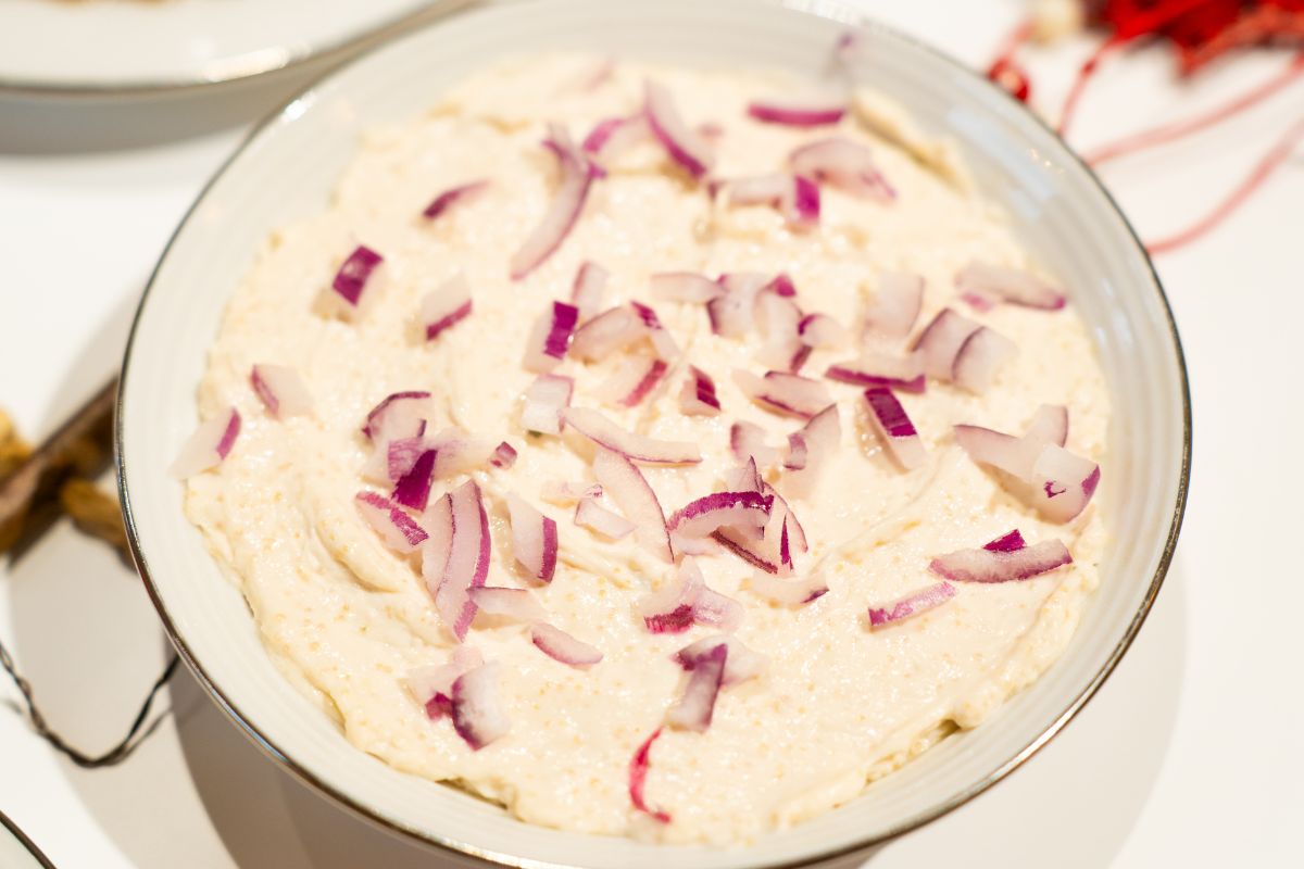 O reinterpretare vegetală a salatei de icre, făcută din amarant gătit lent și asezonat cu grijă. Textura fină, ușor crocantă, iar gustul curat și echilibrat, cu note proaspete care amintesc de varianta clasică. O salată simplă, sățioasă și surprinzător de bună, potrivită atât pentru mesele de zi cu zi, cât și pentru platouri festive.